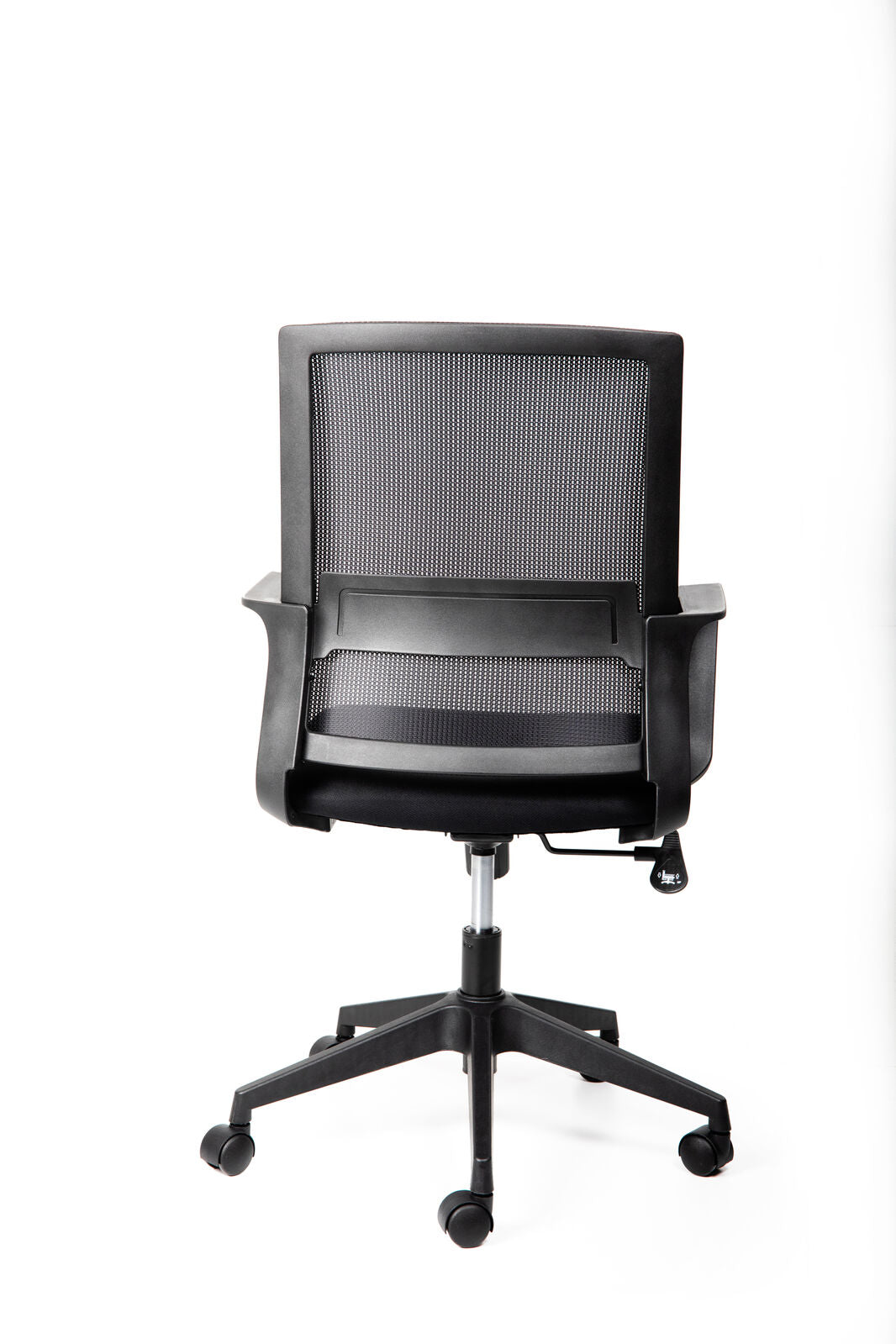 - Sleek modern mesh back design with fixed lumbar support